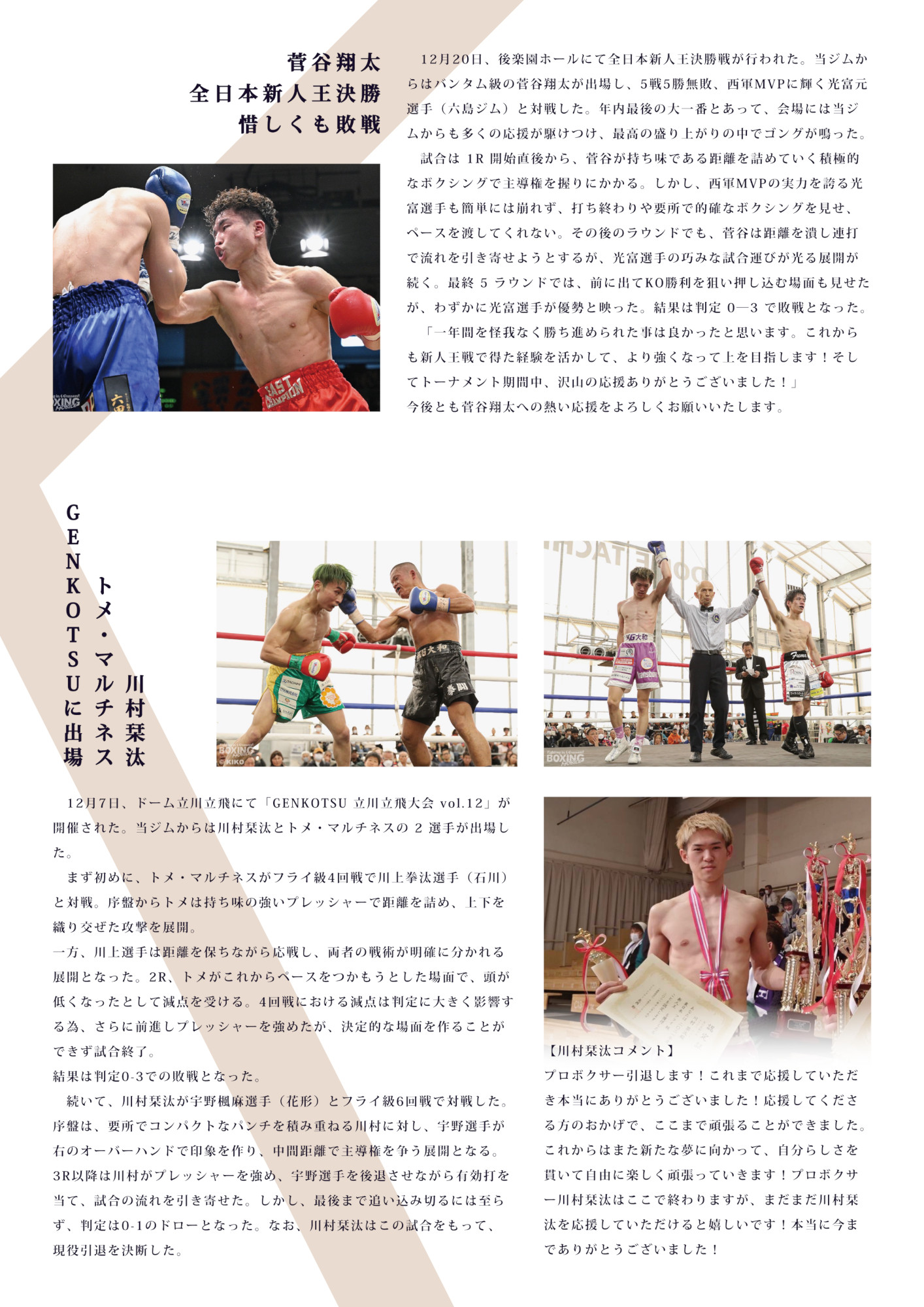 『KG大和通信【大和魂】』2026年1月号が発行されました!2026年最初のKG大和通信です!今回も特別に2ページでお届けいたします✌⭐会長から年始のご挨拶⭐菅谷翔太 全日本新人王決定戦の結果⭐川村栞汰、トメ・マルチネス 試合結果